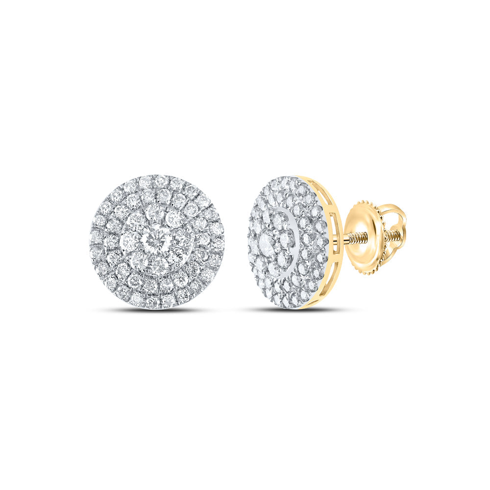 10kt Yellow Gold Womens Round Diamond Cluster Earrings 1-1/4 Cttw -