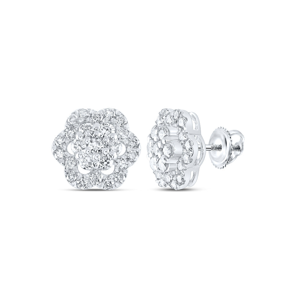 14kt White Gold Womens Round Diamond Flower Cluster Earrings 1 Cttw -