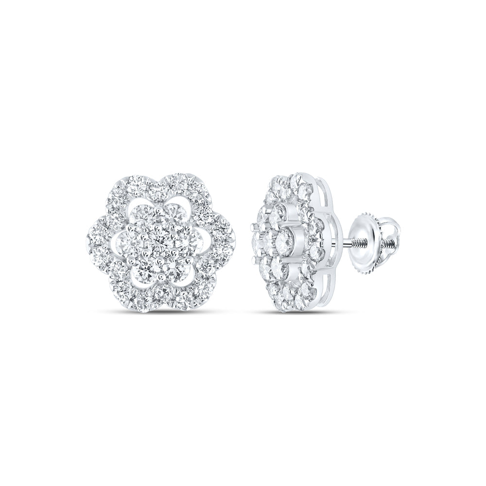 14kt White Gold Womens Round Diamond Flower Cluster Earrings 2 Cttw -