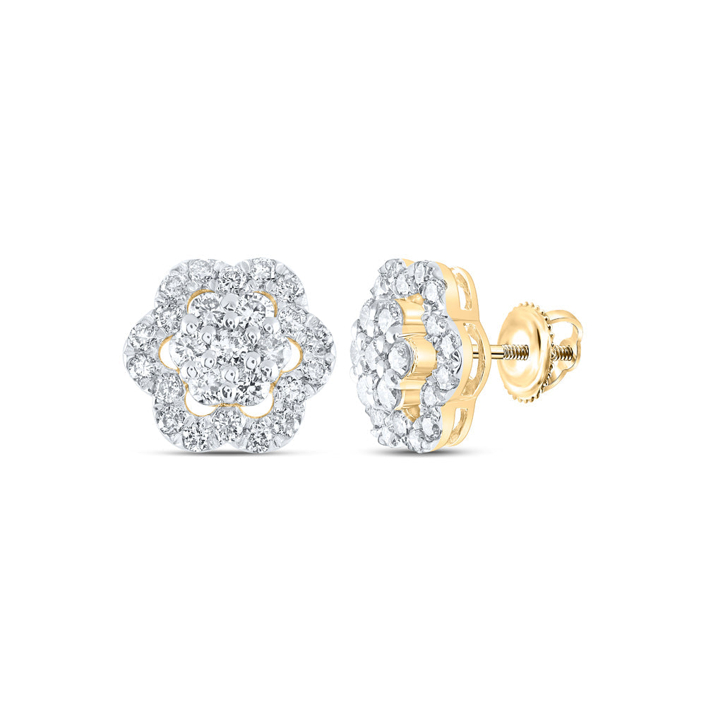 14kt Yellow Gold Womens Round Diamond Flower Cluster Earrings 1 Cttw -