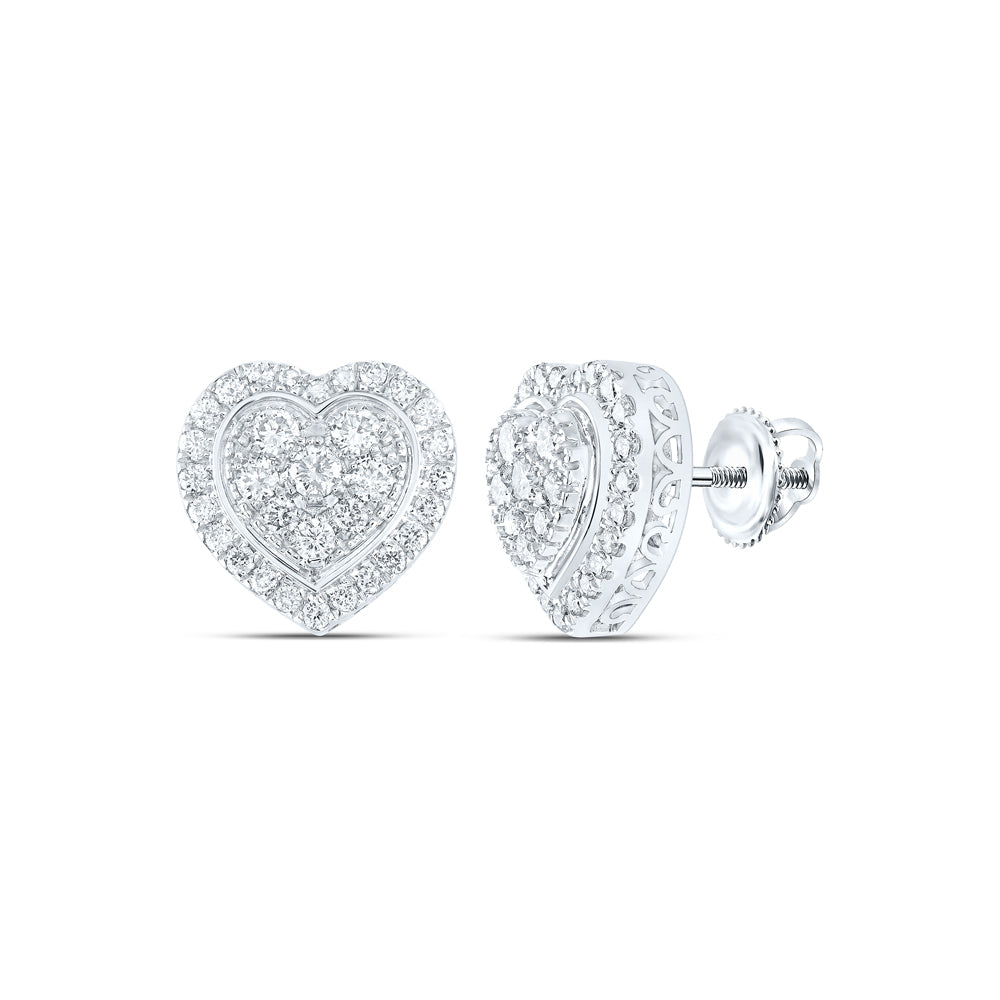 10kt White Gold Womens Round Diamond Heart Earrings 1-1/4 Cttw -