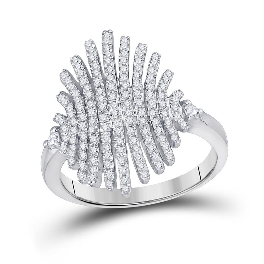 10k White Gold Round Pave-set Diamond Womens Wide Luxury Cocktail Band Ring 1/2 Cttw