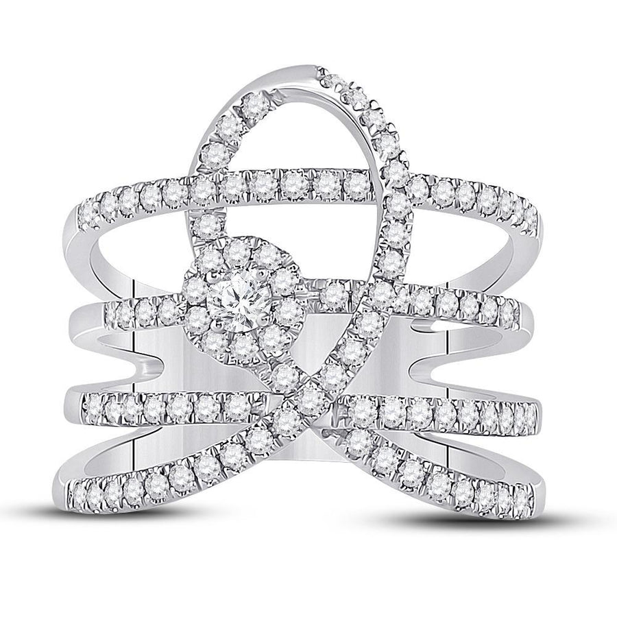 14kt White Gold Womens Round Diamond Spiral Strand Fashion Ring 3/4 Cttw