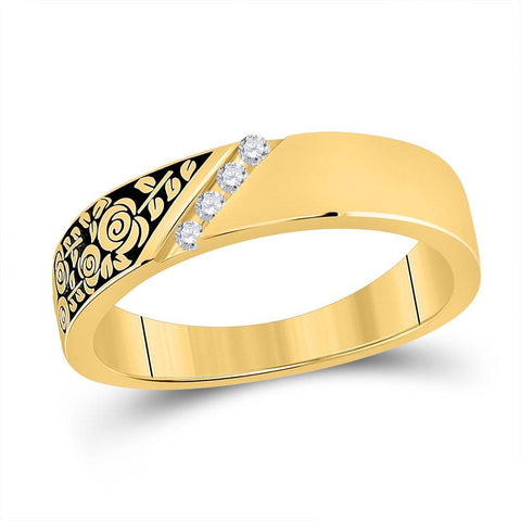 14kt Yellow Gold Mens Round Diamond Wedding Rose Flower Band Ring 1/20 Cttw